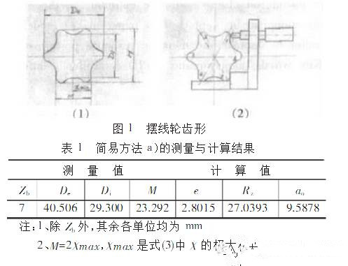 (5) 量棒法量棒法測量擺線輪(詳見參考文獻2)雖能求出擺線輪實際參數,但因多測兩個線性數據,方法不夠簡便。